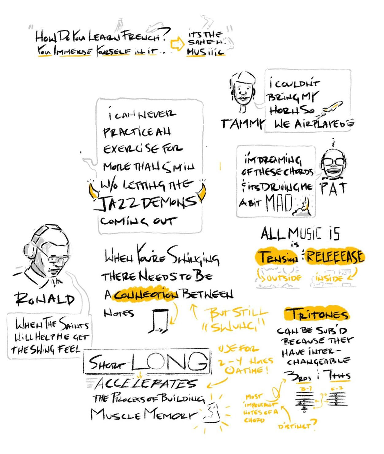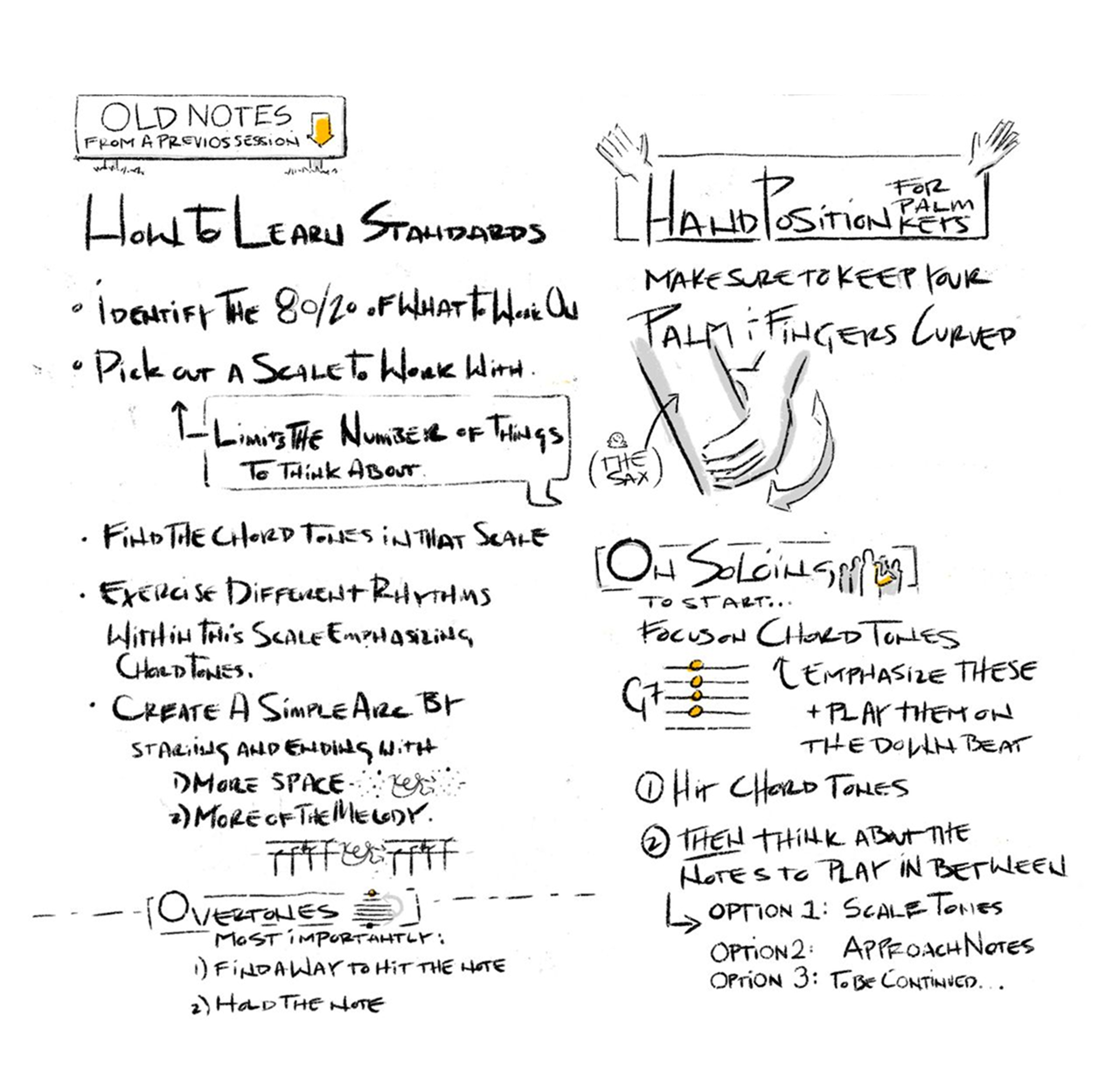 Here are some takeaways, along with sketch notes I made during a few saxophone master classes with the wonderful Alexander Mathias. Let's get to it.